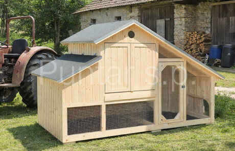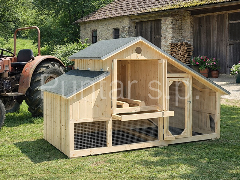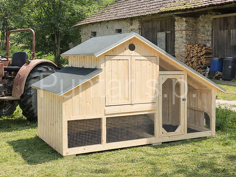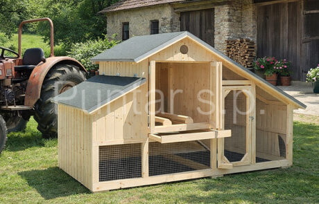 - Kokošnjak je izdelan iz masivnega smrekovega lesa.