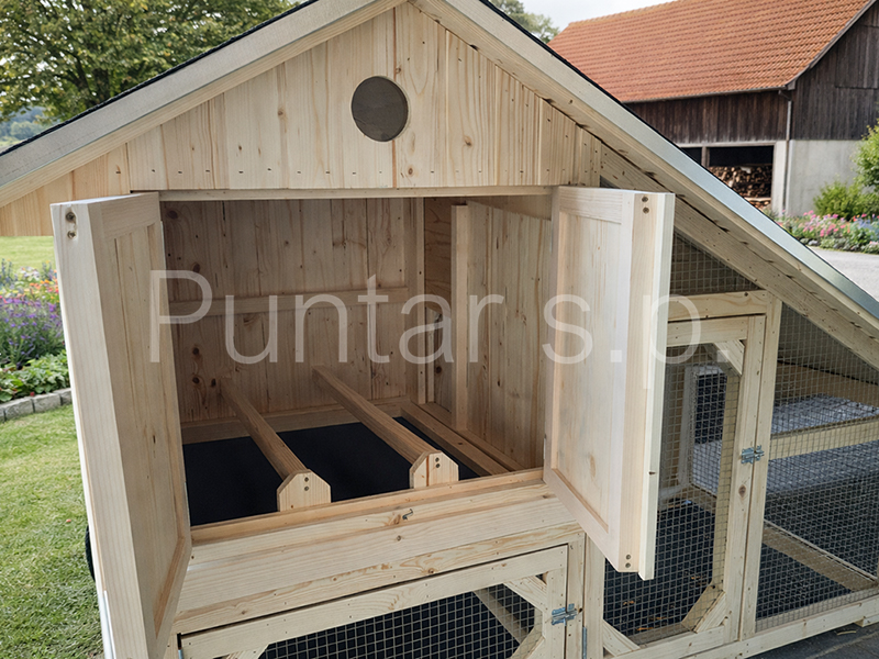 - Kokošnjak je na kolesih, zato ga lahko premikamo.