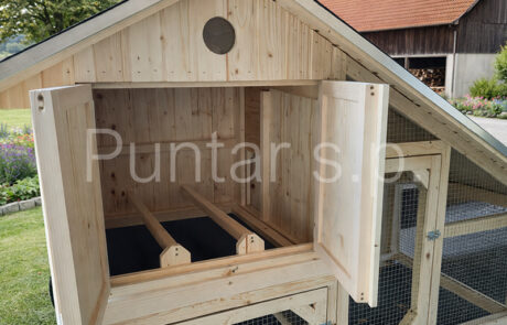 - Kokošnjak je izdelan iz masivnega smrekovega lesa.